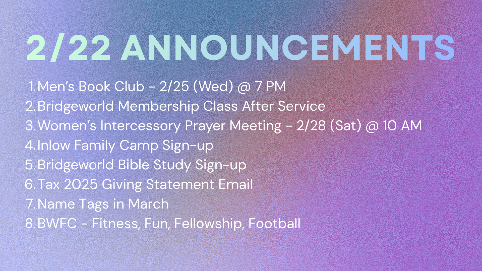 E: bridgeworld.church@gmail.com